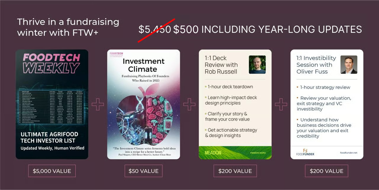 Access to FTW Plus including the AgriFoodTech Investor Database and the book may be shared internally within your organization. External sharing, redistribution, or third-party access is not permitted.